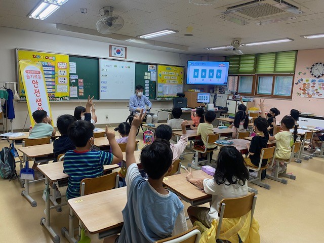 [사진설명] 장애인 강사가 초등학생을 대상으로 진행하는 ‘슬기로운 안전생활’ 교육.