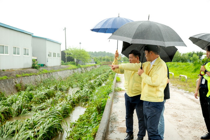 관내 법곳동, 송포동에 설치된 간이펌프장과 간이펌프장 증설공사 현장을 방문하여 시작된 장마철 호우에 정상적으로 운영될 수 있도록 전반적인 시설 점검을 실시했다.