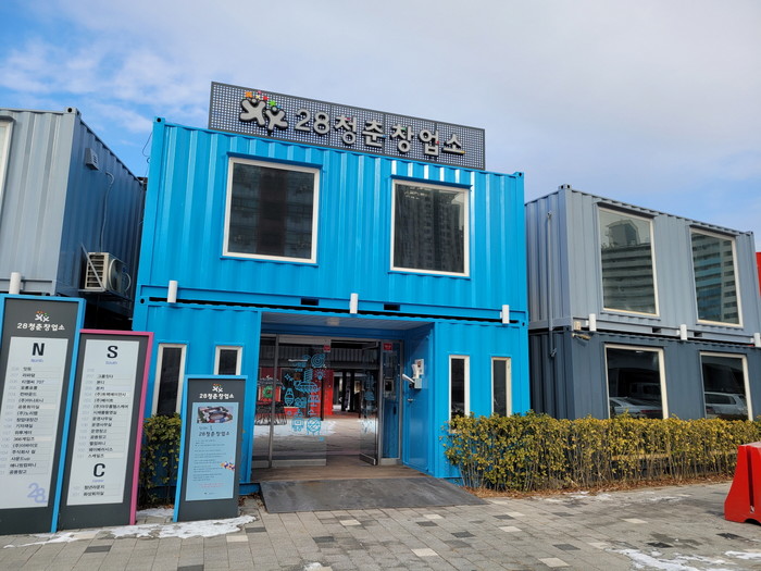 ‘28청춘창업소’는 고양시 덕양구 화정동 덕양구청 인근에 위치하고 있으며, 컨테이너를 이용한 23개의 입주실과 공용(회의실, 휴게실, 기자재실, 촬영실 등) 시설을 갖추고 있다.