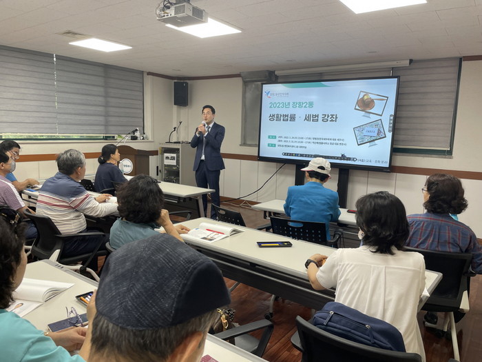 이번 강좌는 지난해 11월 개최된 주민총회에서 주민들의 투표로 결정된 장항2동 주민자치회(교육·문화 분과)의 주요 사업 중 하나로, 법률 상식과 부동산 절세 방법 등에 관심 있는 장항2동 주민 또는 고양시민들을 대상으로 진행되었다.