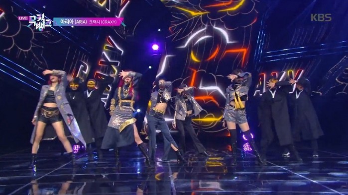 '우아, 카린, 수안, 혜진, 채이'로 구성된 5인조 크랙시(CRAXY)의 데뷔 타이틀 '아리아'는 안무팀과 함께 난이도가 높고 파워풀한 군무를 소화해 시청자의 눈길을 사로잡았다.