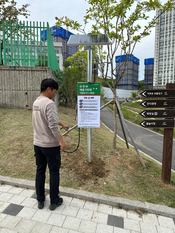 [사진설명] 지축근린공원의 해충기피제 자동분사기.
