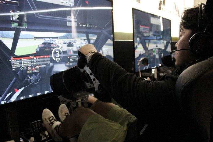 [사진설명] 지난 4월 열렸던 슈퍼레이스 심 레이싱 대회 당시 엑스타레이싱의 정의철이 레이싱기어를 사용해 심 레이싱에 참여하고 있다.