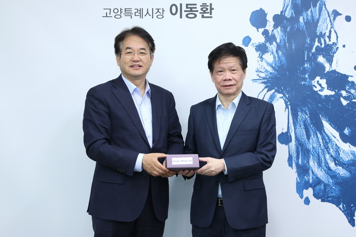 [사진설명] 싱가포르 난양공대 수석 부총장과 간담회 (이동환 고양특례 시장(좌), 람킨용(Lam Khin Yong) 수석 부총장(우))
