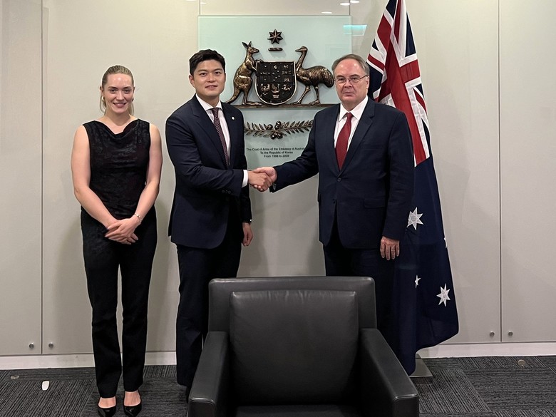 또한 김용태 의원은 제프 로빈슨 호주대사와 양국 간 군사외교, 방위산업, 저탄소 에너지산업에서 협력의 중요성과 호주 이민정책의 성과에 대해 폭넓은 의견을 교환하였다.