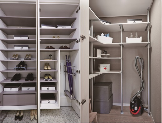 △ 삼성물산이 서울 동작구 사당1구역 '래미안 이수역 로이파크'에 하이브리드 수납 특화시스템을 적용한다. 사진은 신발장(왼쪽)과 복도장 이미지. <자료=삼성물산> |