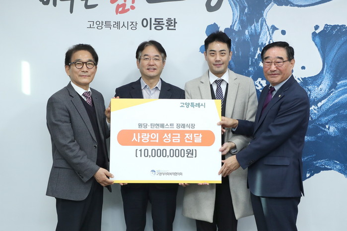 [부자동네타임즈 김인수기자] 고양특례시는(시장 이동환) 지난 12일 원당·탄현베스트 장례식장이 시민행복 나눔을 위한 사랑의 성금 1천만 원을 기부했다고 말했다.
