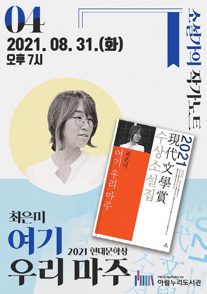 [부자동네타임즈 김인수기자] 고양시 아람누리도서관은 오는 31일(화) 오후 7시, 최은미 작가와 함께하는 북토크 소설가의 작가노트를 개최한다.
