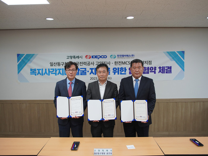 [부자동네타임즈 김인수기자] 고양특례시 일산동구는 지난 19일 한국전력공사 고양지사 및 한전MCS 고양지점과 복지사각지대 발굴·지원을 위한 업무협약을 체결했다.
