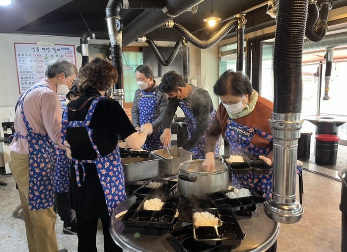 특히 이번 도시락 나눔에는 대한불교 조계종 정혜사의 떡 기부도 이루어져 한층 의미를 더했다.