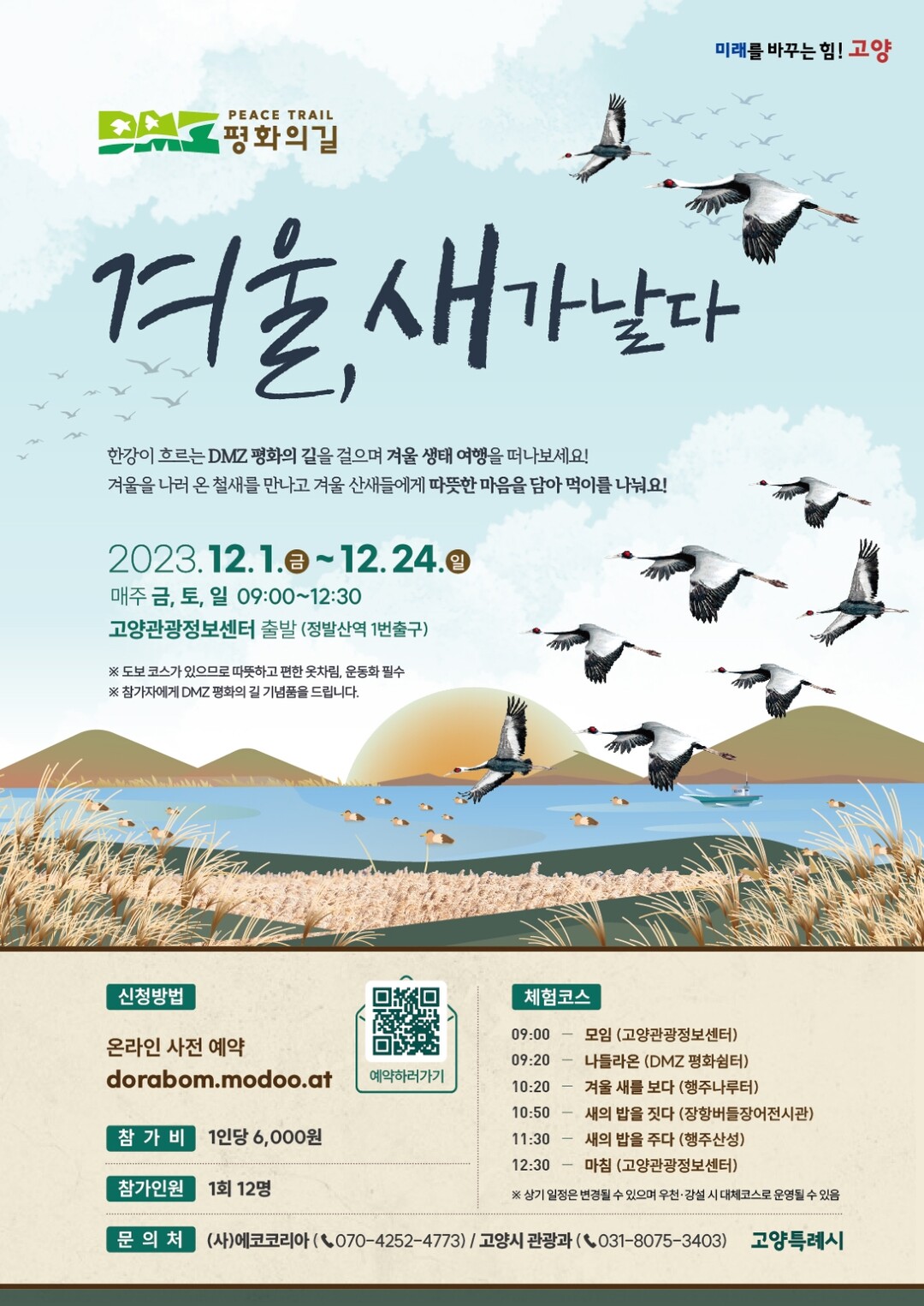 시 관계자는 “한강 하구에서 철새를 관찰하고 산새에게 먹이를 주며 추운 겨울에도 약동하는 생명을 느끼고 특별한 겨울 추억을 만드시기 바란다. 앞으로도 고양시의 역사와 생태를 체험할 수 있는 관광 프로그램을 기대해주시기 바란다”라고 말했다.