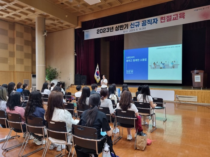 이날 에듀이룸컨설팅 강사가 ‘민원인·직원과 통하고 통쾌한 소통법’을 주제로 소통에 대한 이해, 소통 마음가짐, 특이민원 대응법 등을 강의했다.
