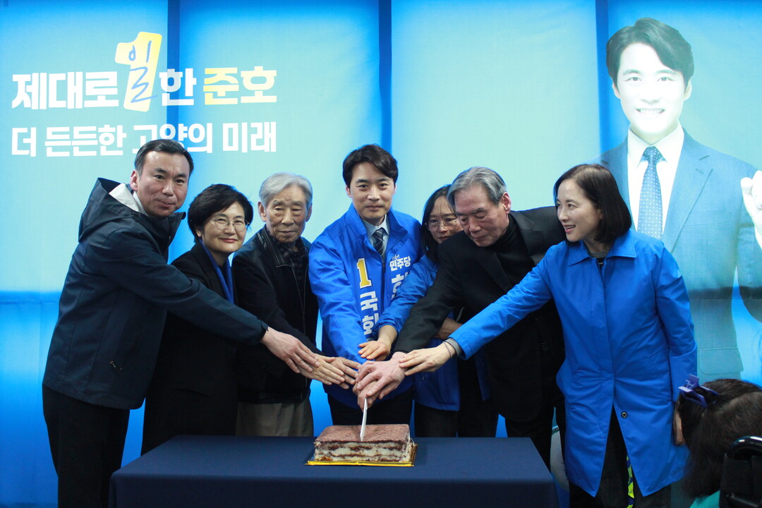 방송인 노정렬 씨의 사회로 진행된 이날 개소식에는 다채로운 행사가 준비돼 이목을 끌었다. 먼저 고양시에서 오랜 기간 거주해 온 두 아이의 아버지인 당원이 양육·보육과 관련된 정책건의서를 전달했다. 또 이해동 목사의 친필 휘호를 김영복 상임선거대책위원장이 한준호 후보에게 전달하며 격려했다.