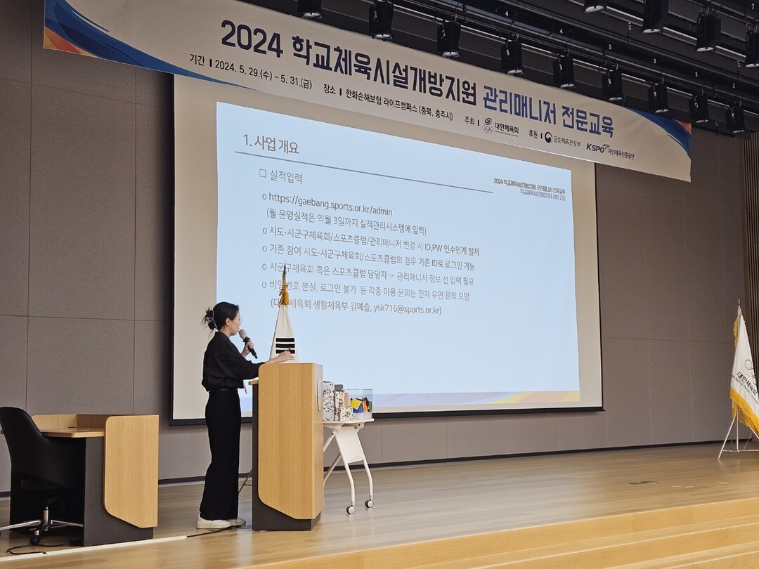 [부자동네타임즈 = 김인수 기자] 대한체육회(회장 이기흥)는 지난 5월 29일부터 5월 31일까지 ‘2024년도 학교체육시설개방지원 관리매니저 전문교육’을 개최한다.