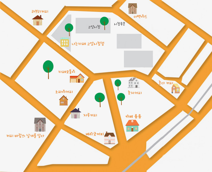 [사진설명] 고양시청 주변 다회용컵 사용 커피 전문점 지도.
