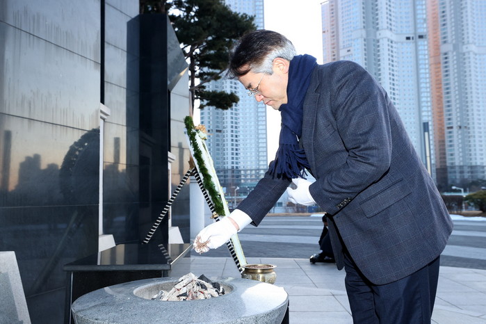 [사진설명] 이동환 고양특례시장이 신년 참배를 하고 있다.