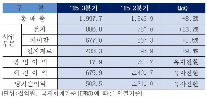 당기 순이익은 일회성 이익의 영향을 받아 흑자전환했다. 삼성물산 합병에 따른 회계상의 주식 처분 이익이 약 5200억원, 삼성BP화학 지분 처분 이익이 약300억원이다. 삼성디스플레이 지분법 평가 이익도 반영됐다.