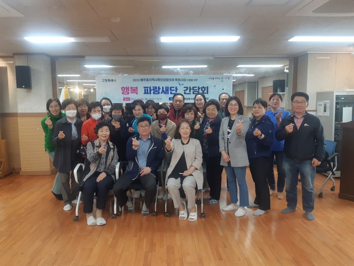 [부자동네타임즈 김인수기자] 고양특례시 행주동 지역사회보장협의체는 지난 24일 2023년 지역특화사업 추진을 위한 행복파랑새단 간담회를 개최했다. 행주동 지역특화사업은 마을 주민들로 구성된 봉사단이 도움이 필요한 가구에 복지서비스를 제공하여 복지안전망을 구축하는 사업이다.