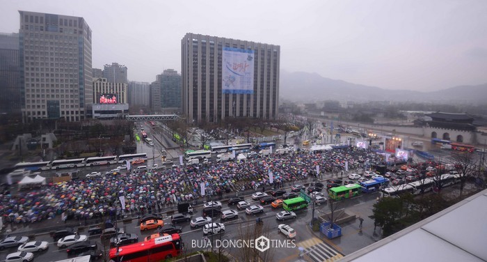 5일 오후 서울 광화문 광장에서 열린 행복바라미 문화대축전에 참석한 불자들이 금강경을 독송하고 있다. 2017.04.05.