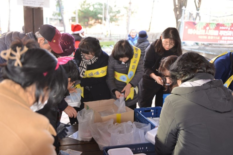 24일 전주 벧엘교회에서 크리스마스를 맞이해 이웃사랑 실천 활동 후 기념사진 촬영을 하고 있다.