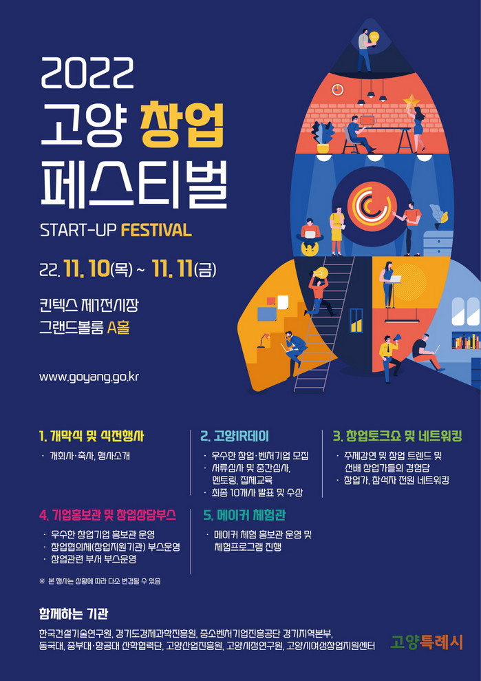 시 관계자는 “다양한 분야의 창업·벤처기업들이 고양벤처펀드 투자심사 등 성장 발판을 얻을 수 있는 큰 행사가 될 것”이라고 말했다.