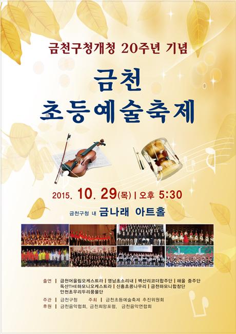 이날 공연에는 관내 초등학교 음악단체인 금천어울림오케스트라, 영남초소리내, 백산리코더합창단, 독산THE하모니오케스트라, 신흥초콩나무리합창단, 금천하모니합창단, 안천초우리두리풍물단에 소속된 학생 320여 명이 그 동안 연습한 솜씨를 뽐낼 예정이다.
