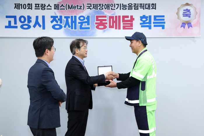 [부자동네타임즈 김인수기자] 고양특례시(시장 이동환) 소속 정재원(환경관리원·청각장애) 실무원이 제10회 국제장애인기능올림픽대회 도자기 직종에 참가해 값진 동메달을 획득했다. 고양시는 지난 10일 본청 열린시장실에서 정재원 실무원에 공로패를 전달했다.