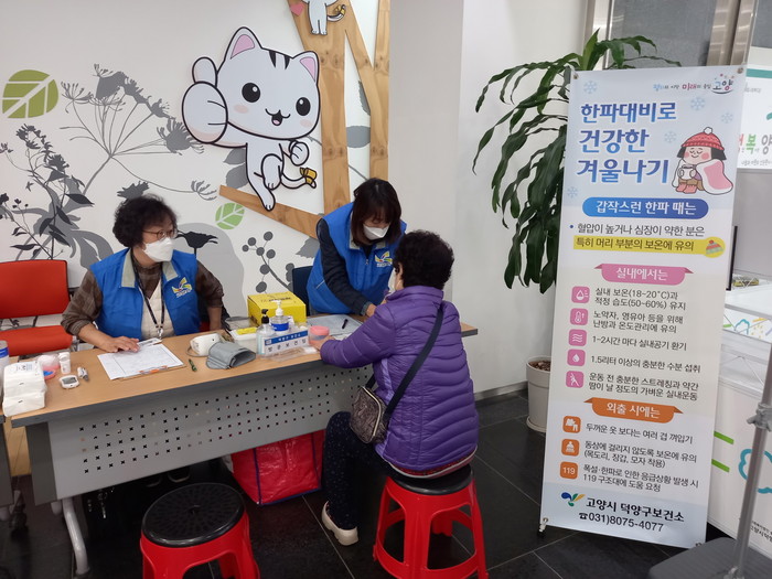[사진설명] 덕양구보건소 방문보건팀이 한파대응 요령을 안내하고 있다.