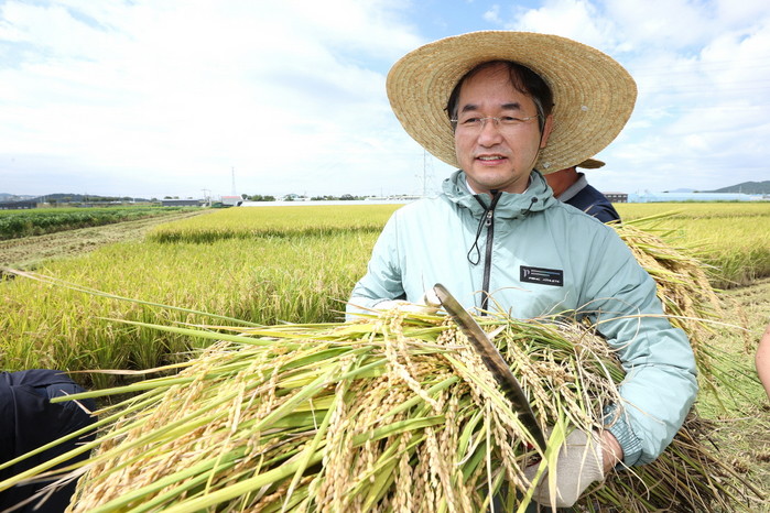 [부자동네타임즈 김인수기자] 24일 고양특례시 구산동에서 햇벼 수확 행사가 열렸다. 올해의 첫 햇벼 수확을 축하하고 농업인을 격려하기 위해 이동환 고양특례시장과 농협 관계자, 농업인 등 20명이 참석했다. 이동환 시장은 “올해 햇벼 수확의 기쁨을 함께하게 돼 기쁘다.”고 밝히며 “쌀값 하락으로 농가의 시름이 깊다. 고양시가 쌀 소비 촉진과 안정적인 농업소득 창출을 위해 최선을 다하겠다”고 전했다.
