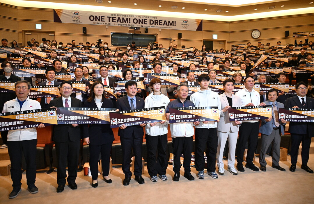 [부자동네타임즈 = 김인수 기자] 대한체육회(회장 이기흥)는 4월 17일 오전 11시 진천 국가대표선수촌에서 2024 파리하계올림픽대회 100일을 앞둔 국가대표 선수들을 격려하고 응원하기 위한 ‘ONE TEAM! ONE DREAM!’ 행사를 개최했다.