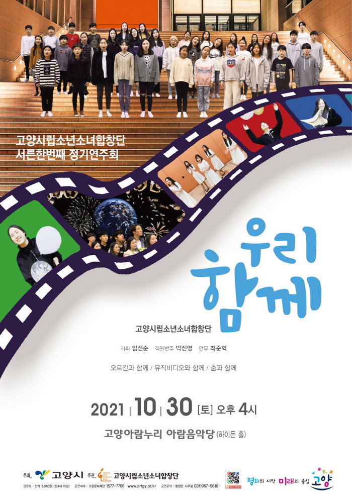 [부자동네타임즈 김인수기자] 고양시는 창단 이래 고양시 청소년 문화사절단으로 자리해온 고양시립소년소녀합창단의 제31회 정기연주회 우리 함께를 오는 10월 30일(토) 오후 4시 고양아람누리 아람음악당(하이든홀)에서 개최한다.
