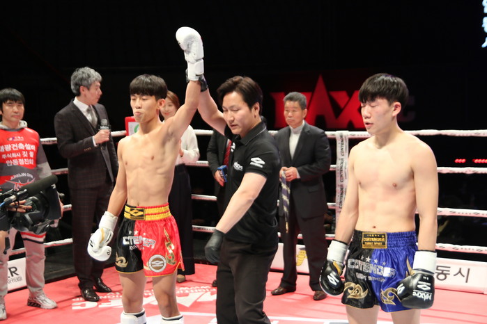 또 다른 경기론 6경기인 김태완(17, 안동정진)과 김재호(20, 청주 더송짐)의 경기로 벨이 울리자 마자 김태완이 번개같이 달려들어 김재호를 펀치와 킥으로 일방적으로 두들기며 승리했다.