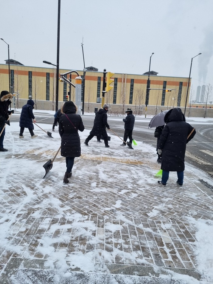 영하 10도이하의 강추위 속에서 공무원들은 주민들의 보행안전, 불편해소를 위해 관내 ▲버스승강장 ▲경사로 ▲인도 ▲초등학교 주변 곳곳에 쌓인 눈을 치우고, 염화 칼슘을 살포하는 등 시민불편 최소화에 총력을 기울였다.
