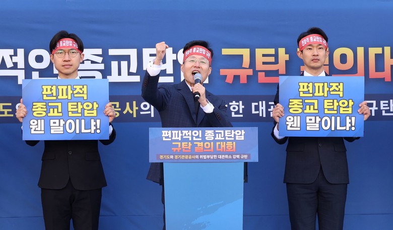 참석자들은 결의문 낭독 후 “정치와 종교를 분리하라”, “편파적 행정을 중단하라”는 구호를 외치며 항의했다.