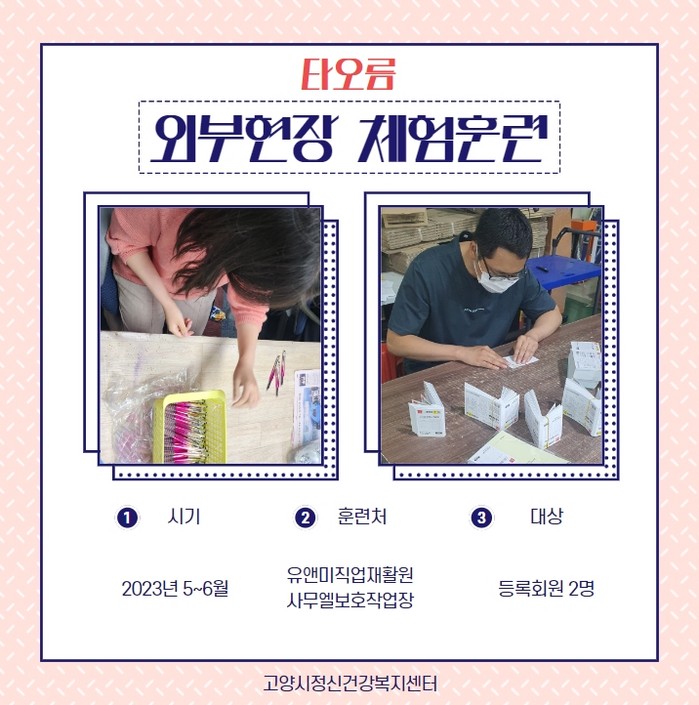 고양시정신건강복지센터는 센터 이용자 대상 직업재활 프로그램의 일환으로 취업 전 준비 프로그램과 취업유지 프로그램을 운영하고 있다.