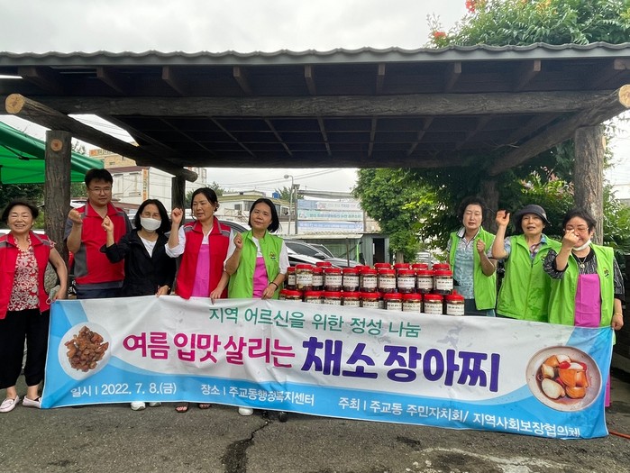[부자동네타임즈 김인수기자] 고양특례시 주교동 주민자치회와 지역사회보장협의체가 지난 8일 무더운 날씨에도 불구하고 관내의 어려운 어르신을 위해 채소장아찌를 담가 복지사각지대에 있는 어르신 40여 가구에 전달하는 지역 어르신을 위한 정성 나눔 사업을 진행했다.