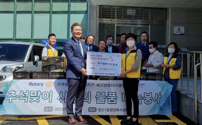 [부자동네타임즈 김인수기자] 새고양로타리클럽(회장 전재국)은 추석 명절을 앞둔 지난 6일 일산1동 행정복지센터(동장 방경화)에 100만원 상당의 고기 10세트를 기부하였다.