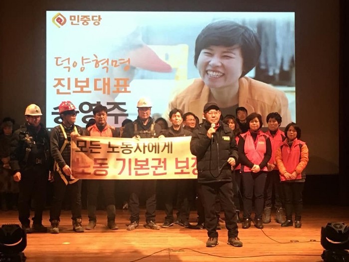 민중당 경기도당 정형주 위원장도 “송영주 후보가 20대 해고자로 노동운동을 시작했던 때부터 함께했다. 민주노동당부터 진보정치의 동반자이자, 진보정당 대표 도의원이 었다. 지금도 처음 만나던 시절의 열정 그대로”라고 소개했다.