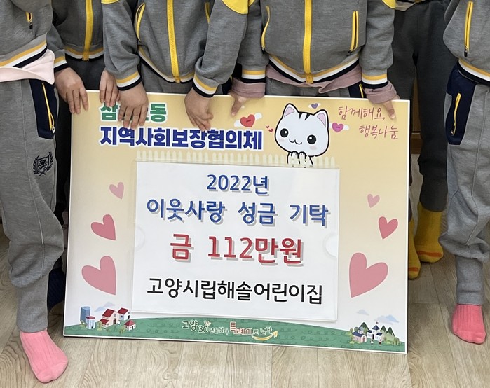 [부자동네타임즈 김인수기자] 고양특례시 삼송2동 행정복지센터는 지난 6일 고양시립해솔어린이집 직원 및 원아가 어려운 이웃을 위해 모은 성금 112만 원을 기탁했다고 밝혔다.