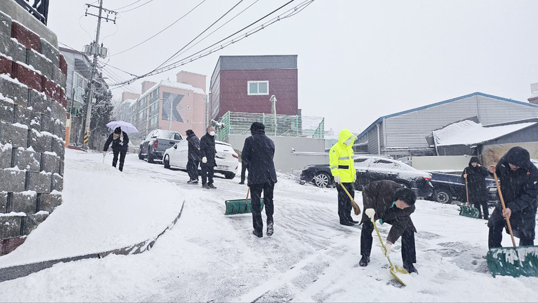 지난해 11월과 지난 1월에는 기록적인 폭설로 인해 미산동 일대 언덕이 미끄러워 차량이 멈추는 등 지역 주민들이 피해를 본 바 있다. 이에 장년회 봉사단은 신현솔숲공원 부근부터 신천지 부천교회 근방까지 520m 정도의 언덕길 곳곳에 염화칼슘을 뿌리고, 제설 작업과 교통 정리를 하는 등 불편을 겪지 않도록 심혈을 기울였다.