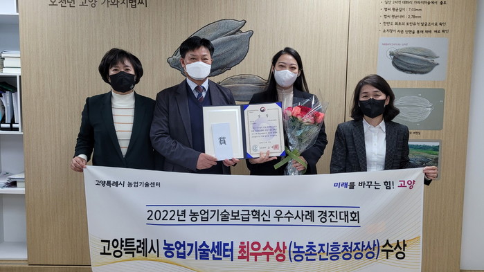 [부자동네타임즈 김인수기자] 고양특례시(시장 이동환) 농업기술센터가 지난 12월 3일 열린 농촌진흥청 주관 ‘2022년 농업기술보급혁신 우수사례 경진대회’에서 최우수상에 해당하는 농천진흥청장상을 수상했다.