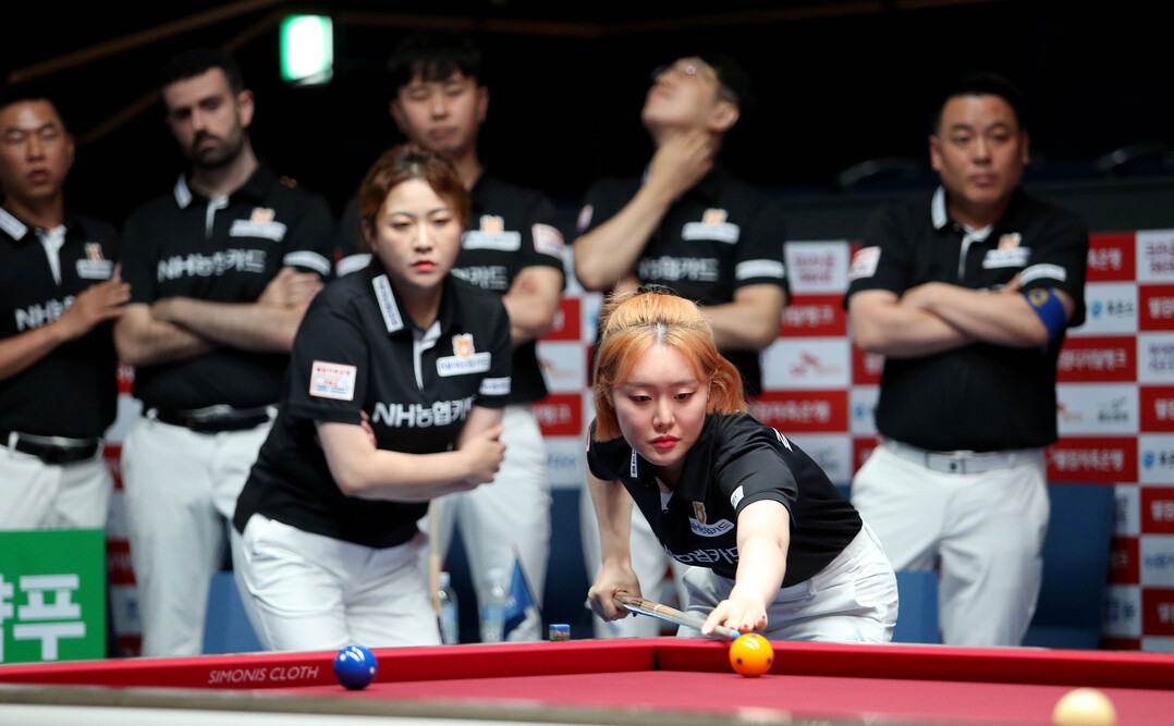 지난 15일 경기도 고양시 ‘고양 킨텍스 PBA 스타디움’에서 열린 ‘웰컴저축은행 PBA 팀리그 2023-2024’ 3라운드 2일차 경기서 NH농협카드는 블루원리조트를 상대로 세트스코어 4:3 신승을 거두었다. 초반 3세트를 따내고도 내리 3세트를 내주며 패배 직전에 몰렸으나 6세트서 몬테스가 엄상필을 꺾고 팀을 승리로 견인했다.