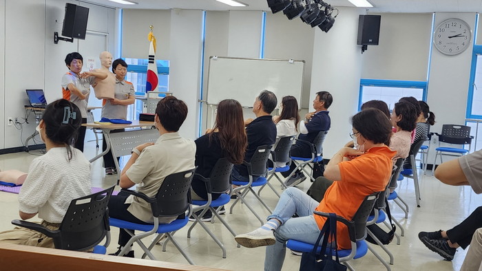 이날 교육은 일산소방서 의용소방대에서 ‘심폐소생술 이론교육’, ‘골든타임의 중요성’, ‘심폐소생술(CPR) 방법’, ‘자동심장충격기(AED) 사용법’ 등으로 진행됐다.