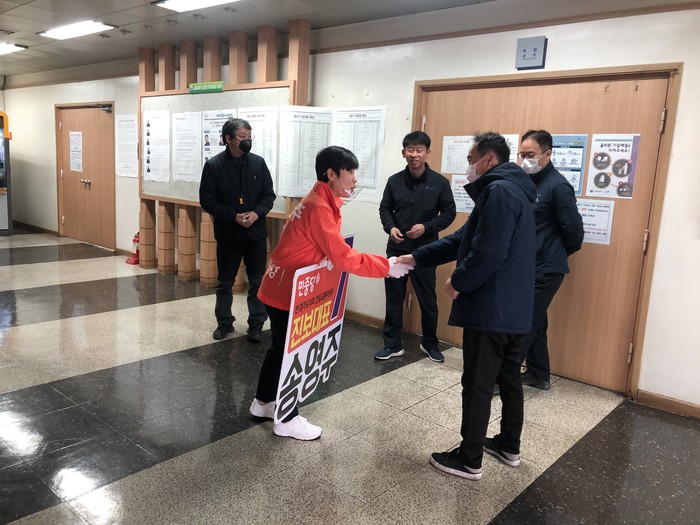 송영주 후보는 “선거운동 기간 잘 듣고 배우겠다. 일할 수 있도록 많은 지지를 부탁한다”고 호소했다.