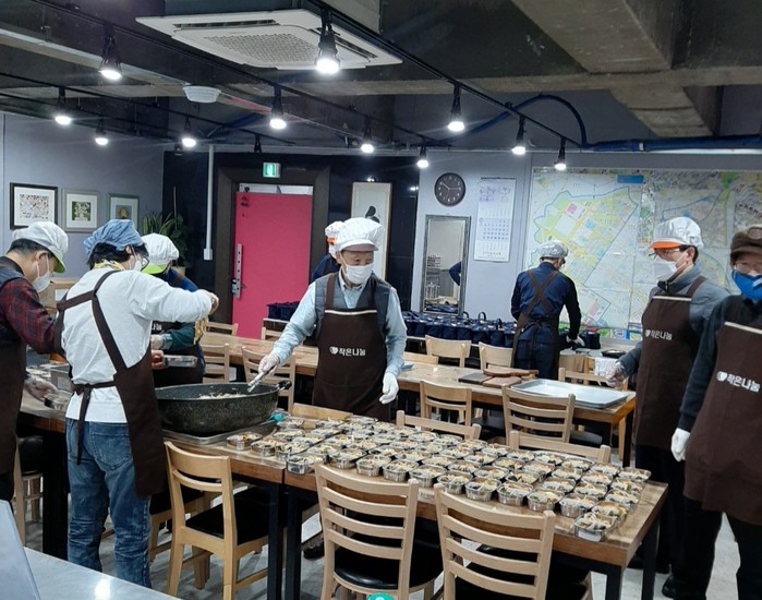 비영리단체 작은나눔은 작년 3월부터 도시락 나눔을 해왔다. 대화동 50가구를 시작으로 일산서구 일대의 독거노인, 장애인 등 85가구의 끼니 걱정을 덜어드리고 있다. 또한 매주 조리에서 배달까지 작은나눔 대표와 45명의 봉사자들이 함께 약 255인분의 도시락 나눔을 하고 있다.