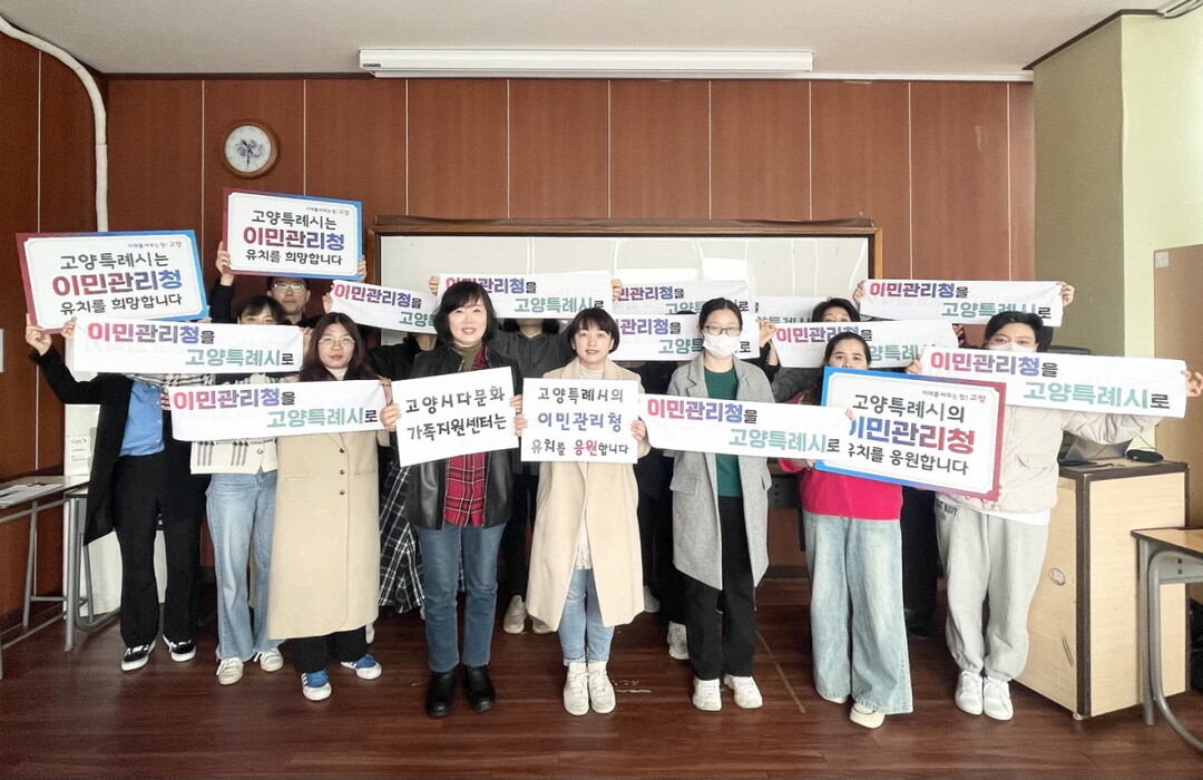 [부자동네타임즈 = 김인수 기자] 고양특례시의 이민관리청 유치를 희망하는 뜻을 담아 고양시다문화가족지원센터(센터장 임유진)가 응원 퍼포먼스를 진행했다.