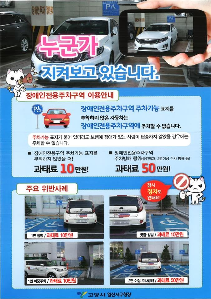 [부자동네타임즈 김인수기자] 고양특례시 일산서구는 최근 장애인전용 주차구역 불법주차 및 방해 행위에 대한 과태료 신고 건수가 급증해 이에 따른 지속적인 홍보 및 계도를 실시하여 주민들의 실천을 독려하고 있다고 지난 29일 밝혔다.