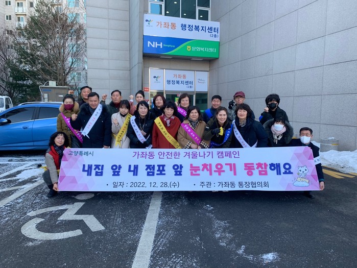 [부자동네타임즈 김인수기자] 고양특례시 일산서구 가좌동은 12월 28일 가좌동 직능단체와 합동으로 제설 캠페인을 실시했다.