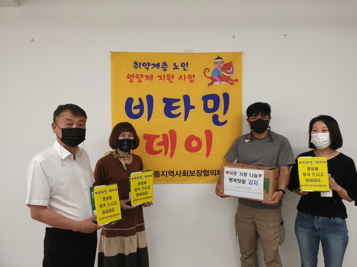 비타민 데이는 이웃의 건강한 생활을 염원하는 마음을 전달하기 위해 영양제를 나누는 행사이다. 올해에는 효자동 주민자치위원, 통장, 복지협의체 위원들이 행복텃밭에서 정성껏 심고 가꾸어 수확한 햇감자도 함께 전달했다.
