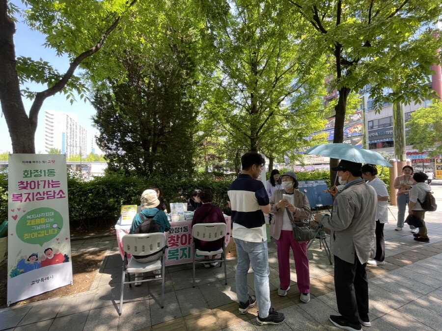 [부자동네타임즈 = 김인수 기자] 고양특례시 화정1동 행정복지센터(동장 이주훈)는 지난 21일 덕양구청 가로수길에서 지역 주민들을 대상으로 원당종합사회복지관과 협력해 복지사각지대 발굴을 위한‘찾아가는 복지상담소’를 운영했다.